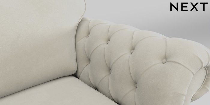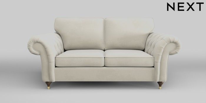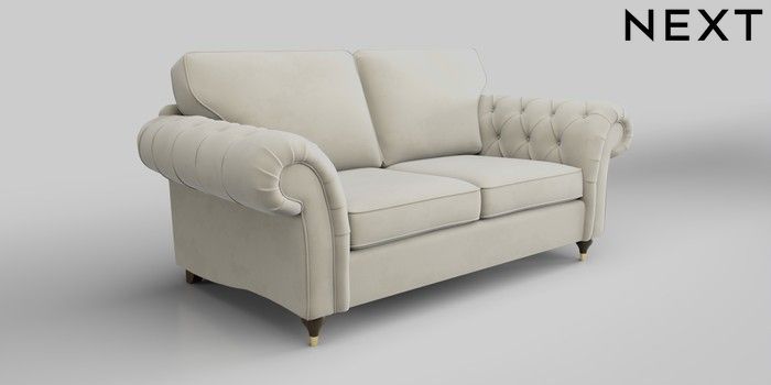 7.0.3 Buy Gosford Highback II Deep Sit 3 Seater Small Sofa Luxe Chenille Oyster Modern Turned Metal Cap - Mid from the Next UK online shop Click here to use our accessible website