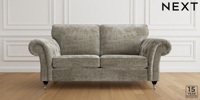 6.11.4 Buy Gosford Highback II Deep Sit 3 Seater Small Sofa Plush Chenille Light Grey Chrome Castor - Dark from the Next UK online shop Click here to use our accessible website