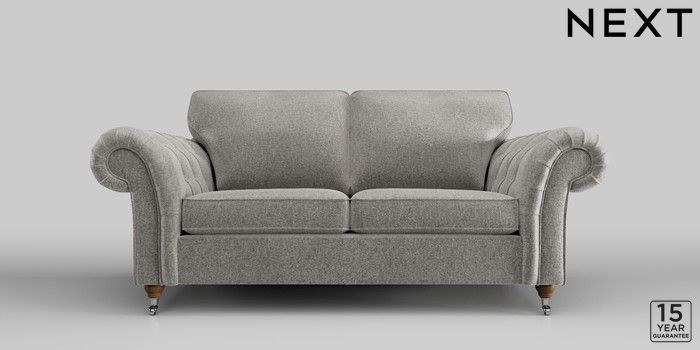 6.11.4 Buy Gosford Highback II Deep Sit 3 Seater Small Sofa Plush Chenille Light Grey Chrome Castor - Standard from the Next UK online shop Click here to use our accessible website