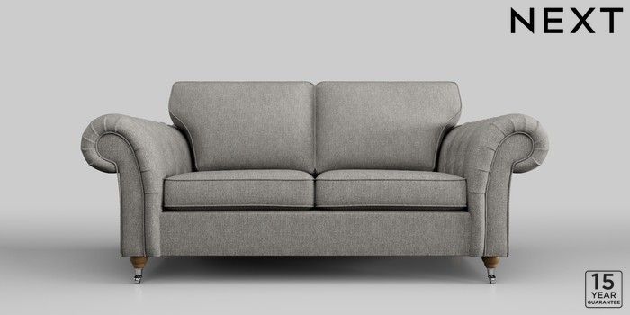 6.11.8 Buy Gosford Highback II Deep Sit 3 Seater Small Sofa Tweedy Chenille Mid Grey Chrome Castor - Standard from the Next UK online shop Click here to use our accessible website
