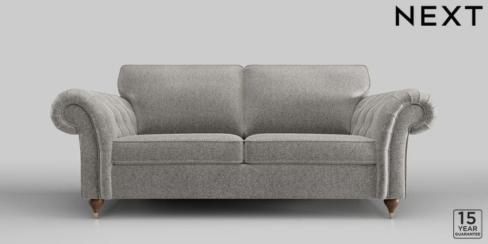 6.11.4 Buy Gosford Highback II Deep Sit 3 Seater Sofa Plush Chenille Light Grey Modern Turned Metal Cap - Mid from the Next UK online shop Click here to use our accessible website
