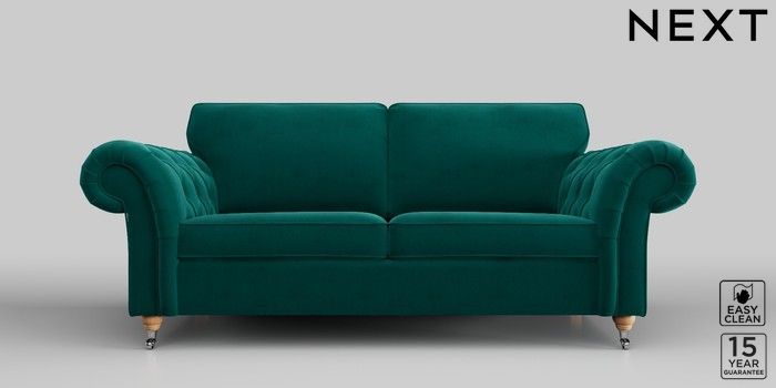 6.11.4 Buy Gosford Highback II Deep Sit 3 Seater Sofa Plush Velvet Easy Clean Juniper Green Chrome Castor - Light from the Next UK online shop Click here to use our accessible website