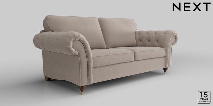 6.12.1 Buy Gosford Highback II Deep Sit 3 Seater Sofa Relaxed Linen Look Mid Natural Modern Turned Metal Cap - Mid from the Next UK online shop Click here to use our accessible website