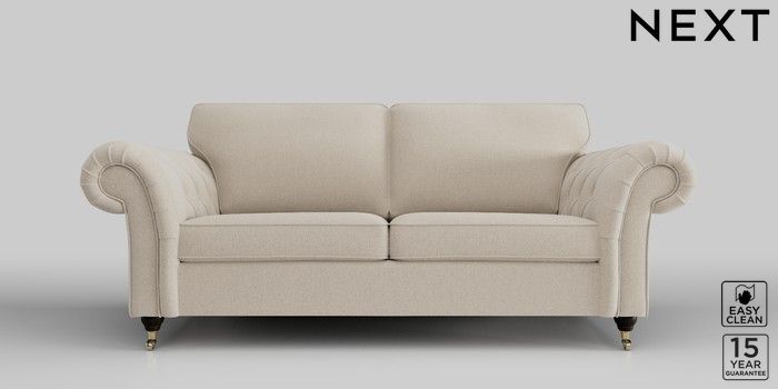 6.11.8 Buy Gosford Highback II Deep Sit 3 Seater Sofa Tweedy Blend Easy Clean Oyster Castor - Dark from the Next UK online shop Click here to use our accessible website