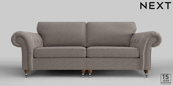 6.11.4 Buy Gosford Highback II Deep Sit 4 Seater Sofa Chunky Chenille Mink Brown Chrome Castor - Standard from the Next UK online shop Click here to use our accessible website