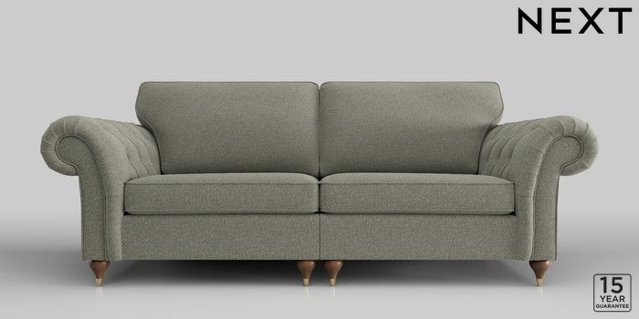 6.12.1 Buy Gosford Highback II Deep Sit 4 Seater Sofa Chunky Marl Light Olive Green Modern Turned Metal Cap - Mid from the Next UK online shop Click here to use our accessible website