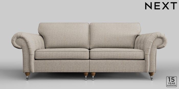 6.11.8 Buy Gosford Highback II Deep Sit 4 Seater Sofa Chunky Weave Mid Natural Chrome Castor - Standard from the Next UK online shop Click here to use our accessible website