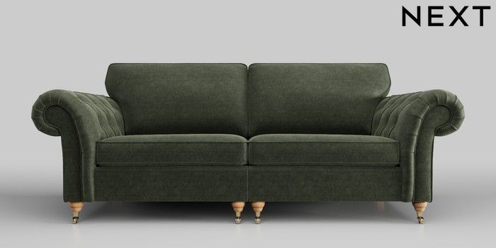 6.12.1 Buy Gosford Highback II Deep Sit 4 Seater Sofa Luxe Chenille Mid Green Castor - Light from the Next UK online shop Click here to use our accessible website
