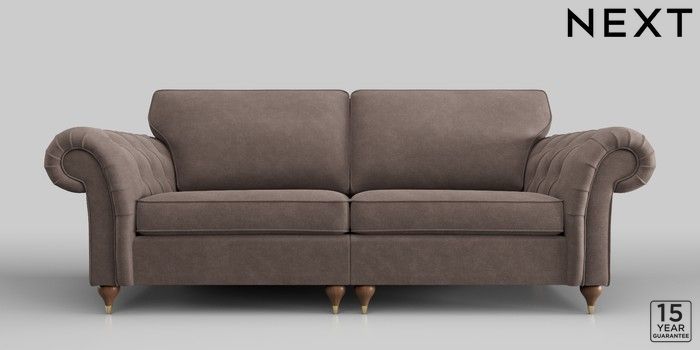 6.12.1 Buy Gosford Highback II Deep Sit 4 Seater Sofa Luxe Chenille Mink Brown Modern Turned Metal Cap - Mid from the Next UK online shop Click here to use our accessible website