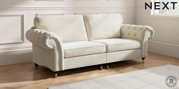 The Gosford High Back sofa brings all the charm and elegance of the classic Gosford, with added comfort thanks to its higher back cushions. The gorgeous deep buttoning on the arms really makes a style statement. This sofa features our special "Firmer Sit" seat cushions, which use a high-density foam core surrounded by soft toppers. This smart design provides ultimate support, lasting durability, and ensures the cushions always spring back to their tailored look. They're also wonderfully low-maintenance. For an extra touch of luxury, we've included plush scatter cushions filled with a rich fibre mix. The seat cushions are reversible too, so a quick flip and plump will keep them looking their best. Make the Gosford High Back uniquely yours by choosing from a huge range of fabrics and a choice of feet.