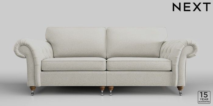 6.11.4 Buy Gosford Highback II Deep Sit 4 Seater Sofa Plush Chenille Oyster Chrome Castor - Standard from the Next UK online shop Click here to use our accessible website