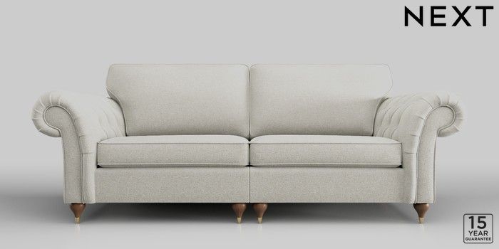 6.11.8 Buy Gosford Highback II Deep Sit 4 Seater Sofa Plush Chenille Oyster Modern Turned Metal Cap - Mid from the Next UK online shop Click here to use our accessible website