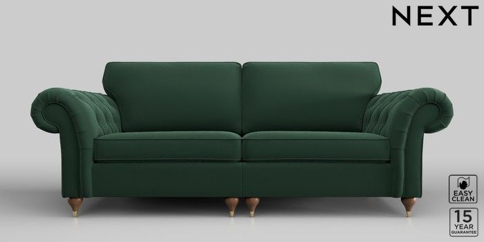 6.11.8 Buy Gosford Highback II Deep Sit 4 Seater Sofa Plush Velvet Easy Clean Bottle Green Modern Turned Metal Cap - Mid from the Next UK online shop Click here to use our accessible website