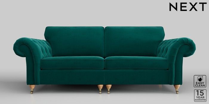 6.11.4 Buy Gosford Highback II Deep Sit 4 Seater Sofa Plush Velvet Easy Clean Juniper Green Castor - Light from the Next UK online shop Click here to use our accessible website