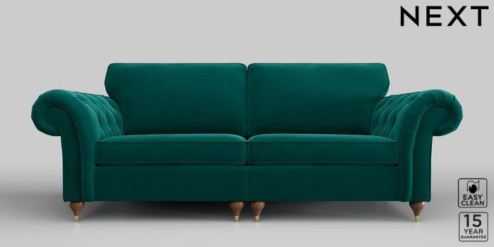 6.11.8 Buy Gosford Highback II Deep Sit 4 Seater Sofa Plush Velvet Easy Clean Juniper Green Modern Turned Metal Cap - Mid from the Next UK online shop Click here to use our accessible website