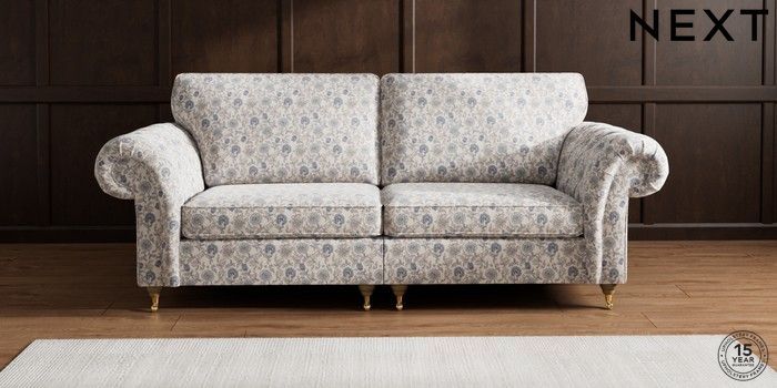 7.3.1 Buy Gosford Highback II Deep Sit 4 Seater Sofa Relaxed Linen Look Print Woodblock Floral Blue Castor - Light from the Next UK online shop Click here to use our accessible website