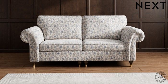 7.3.1 Buy Gosford Highback II Deep Sit 4 Seater Sofa Relaxed Linen Look Print Woodblock Floral Blue Modern Turned Metal Cap - Mid from the Next UK online shop