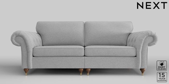 6.11.8 Buy Gosford Highback II Deep Sit 4 Seater Sofa Tweedy Blend Easy Clean Light Silver Grey Modern Turned Metal Cap - Mid from the Next UK online shop Click here to use our accessible website