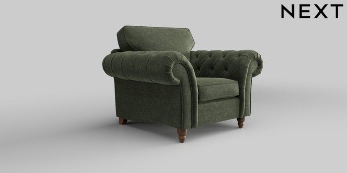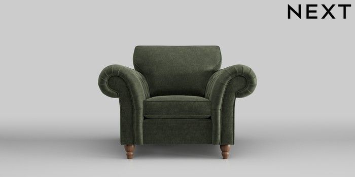6.12.1 Buy Gosford Highback II Deep Sit Armchair Luxe Chenille Mid Green Low Turned - Mid from the Next UK online shop Click here to use our accessible website