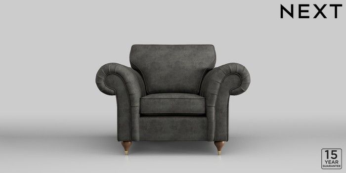 6.11.8 Buy Gosford Highback II Deep Sit Armchair Monza Faux Leather Easy Clean Dark Grey Modern Turned Metal Cap - Mid from the Next UK online shop Click here to use our accessible website