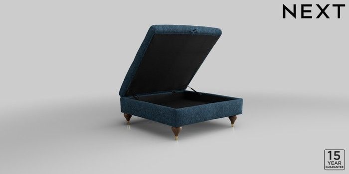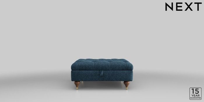 6.12.1 Buy Gosford Highback II Deep Sit Extra Large Storage Footstool Cotswold Chenille Dark Blue Modern Turned Metal Cap - Mid from the Next UK online shop Click here to use our accessible website