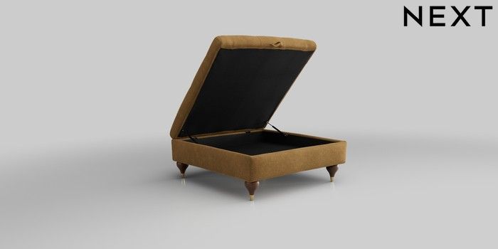 6.12.1 Buy Gosford Highback II Deep Sit Extra Large Storage Footstool Luxe Chenille Honey Yellow Modern Turned Metal Cap - Mid from the Next UK online shop Click here to use our accessible website