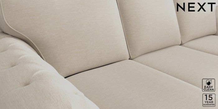 6.12.1 Buy Gosford Highback II Deep Sit Medium Sofa Chaise - Left Hand Fine Chenille Easy Clean Oyster Modern Turned Metal Cap - Mid from the Next UK online shop Click here to use our accessible website