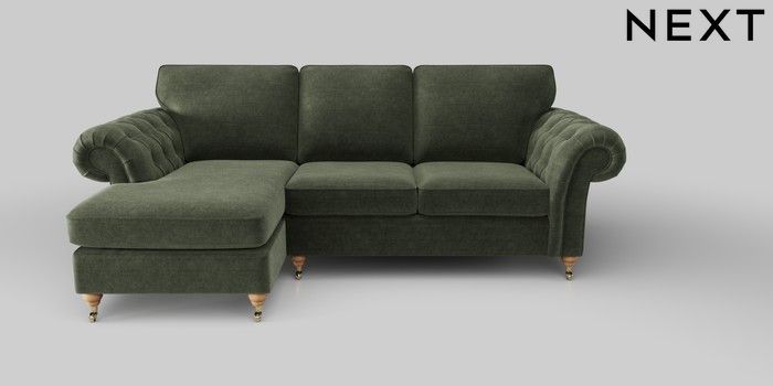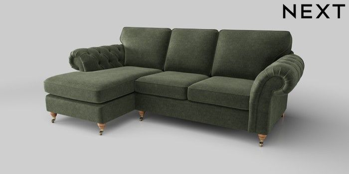 6.12.1 Buy Gosford Highback II Deep Sit Medium Sofa Chaise - Left Hand Luxe Chenille Mid Green Castor - Light from the Next UK online shop Click here to use our accessible website