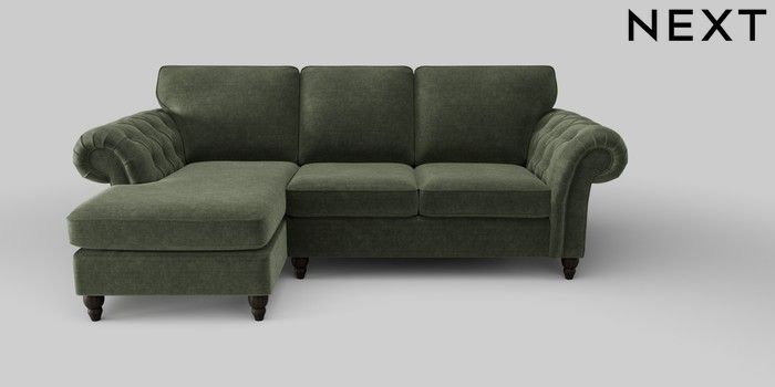 6.12.1 Buy Gosford Highback II Deep Sit Medium Sofa Chaise - Left Hand Luxe Chenille Mid Green Low Turned - Dark from the Next UK online shop Click here to use our accessible website