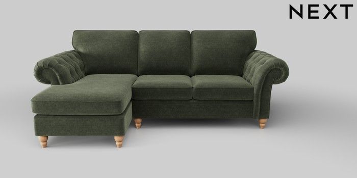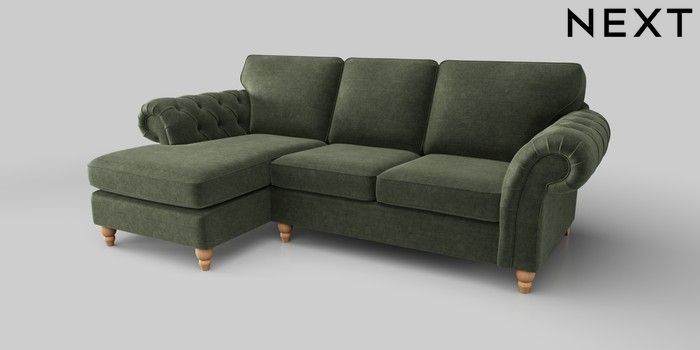 6.12.1 Buy Gosford Highback II Deep Sit Medium Sofa Chaise - Left Hand Luxe Chenille Mid Green Low Turned - Light from the Next UK online shop Click here to use our accessible website