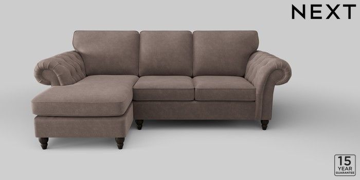6.12.1 Buy Gosford Highback II Deep Sit Medium Sofa Chaise - Left Hand Luxe Chenille Mink Brown Low Turned - Dark from the Next UK online shop Click here to use our accessible website