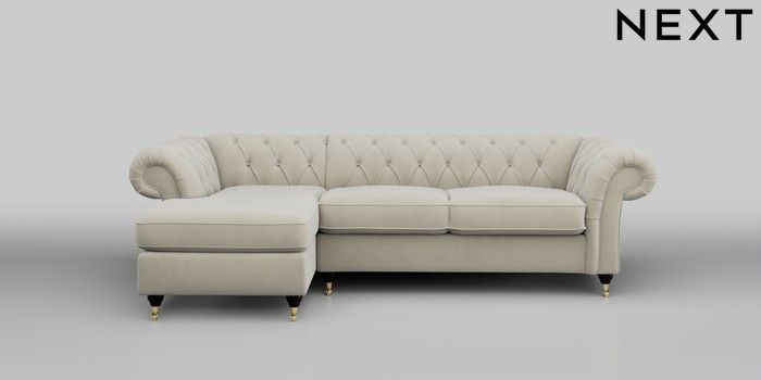 7.0.3 Buy Gosford Highback II Deep Sit Medium Sofa Chaise - Left Hand Luxe Chenille Oyster Castor - Dark from the Next UK online shop Click here to use our accessible website