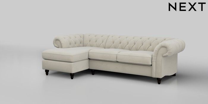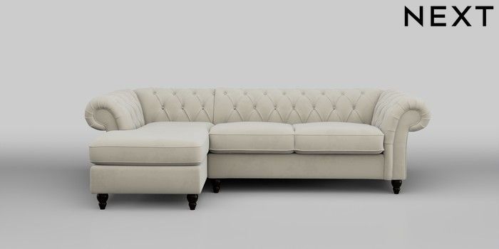 7.0.3 Buy Gosford Highback II Deep Sit Medium Sofa Chaise - Left Hand Luxe Chenille Oyster Low Turned - Dark from the Next UK online shop Click here to use our accessible website