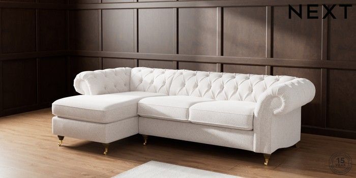 7.2.6 Buy Gosford Highback II Deep Sit Medium Sofa Chaise - Left Hand Multi Weave Oyster Castor - Mid from the Next UK online shop Click here to use our accessible website