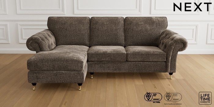 6.12.1 Buy Gosford Highback II Deep Sit Medium Sofa Chaise - Left Hand Plush Chenille Mink Brown Castor - Dark from the Next UK online shop Click here to use our accessible website