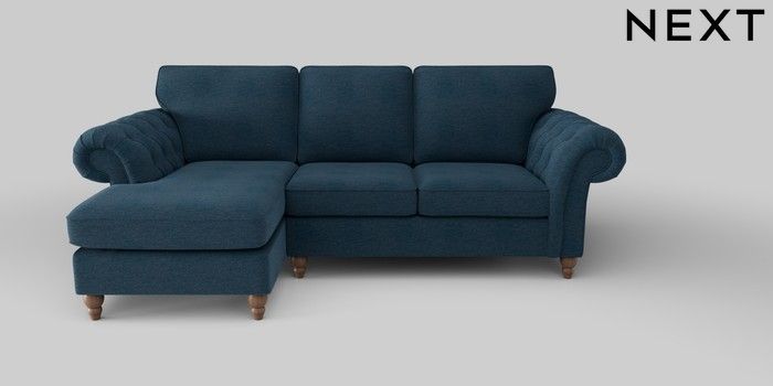 6.12.1 Buy Gosford Highback II Deep Sit Medium Sofa Chaise - Left Hand Ripple Chenille Dark Blue Low Turned - Mid from the Next UK online shop Click here to use our accessible website