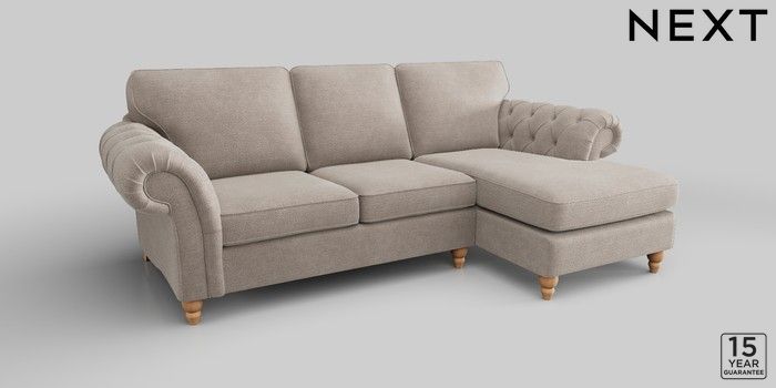 6.12.1 Buy Gosford Highback II Deep Sit Medium Sofa Chaise - Right Hand Boucle Chenille Light Natural Low Turned - Light from the Next UK online shop Click here to use our accessible website