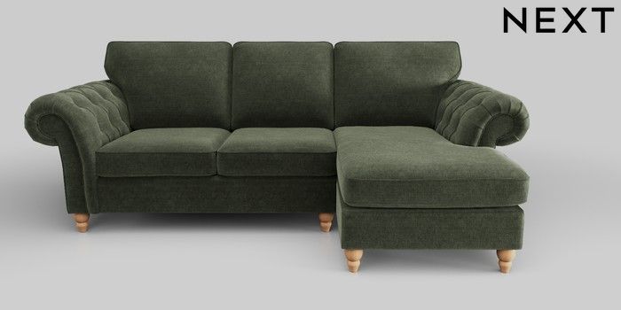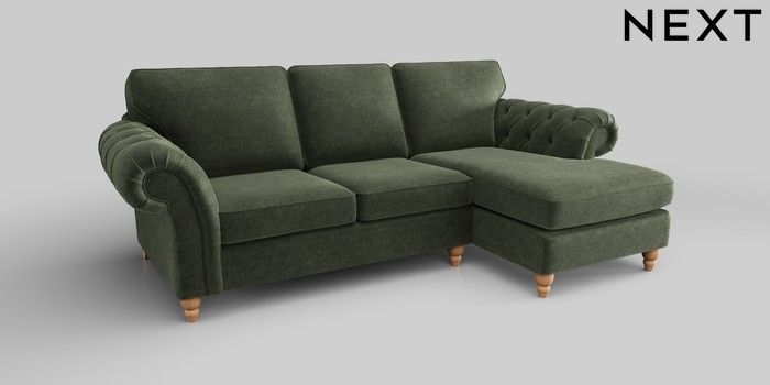 6.12.1 Buy Gosford Highback II Deep Sit Medium Sofa Chaise - Right Hand Luxe Chenille Mid Green Low Turned - Light from the Next UK online shop Click here to use our accessible website