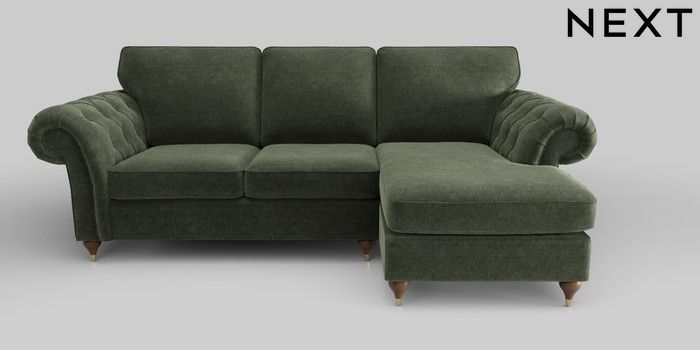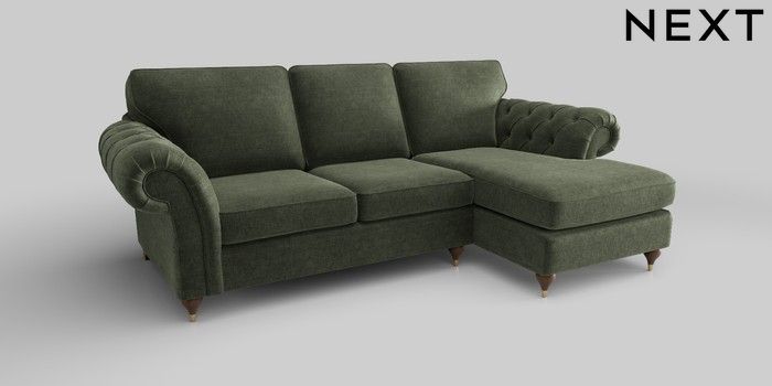 6.12.1 Buy Gosford Highback II Deep Sit Medium Sofa Chaise - Right Hand Luxe Chenille Mid Green Modern Turned Metal Cap - Mid from the Next UK online shop Click here to use our accessible website