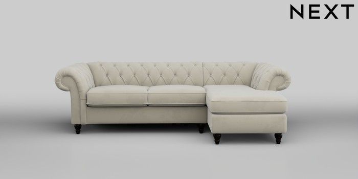 7.0.3 Buy Gosford Highback II Deep Sit Medium Sofa Chaise - Right Hand Luxe Chenille Oyster Low Turned - Dark from the Next UK online shop Click here to use our accessible website