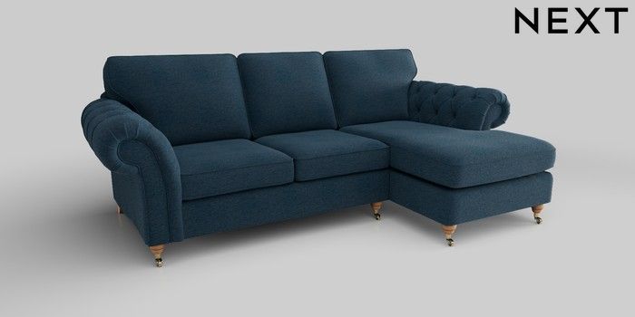 6.12.1 Buy Gosford Highback II Deep Sit Medium Sofa Chaise - Right Hand Ripple Chenille Dark Blue Castor - Light from the Next UK online shop Click here to use our accessible website