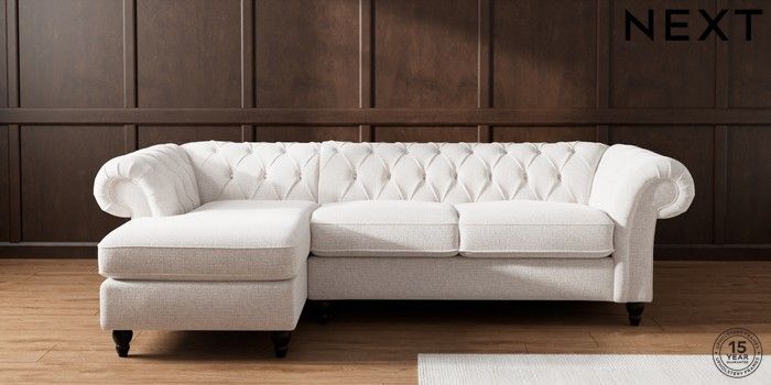 7.2.10 Buy Gosford Highback II Deep Sit Medium Sofa Chaise - Left Hand Multi Weave Oyster Low Turned - Dark from the Next UK online shop Click here to use our accessible website