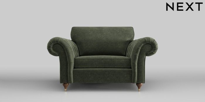 6.12.1 Buy Gosford Highback II Deep Sit Snuggle Luxe Chenille Mid Green Modern Turned Metal Cap - Mid from the Next UK online shop Click here to use our accessible website