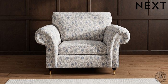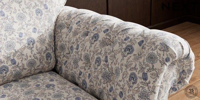 7.3.1 Buy Gosford Highback II Deep Sit Snuggle Relaxed Linen Look Print Woodblock Floral Blue Castor - Dark from the Next UK online shop Click here to use our accessible website