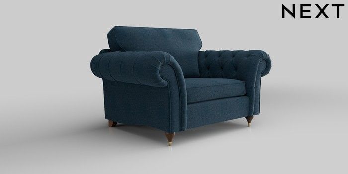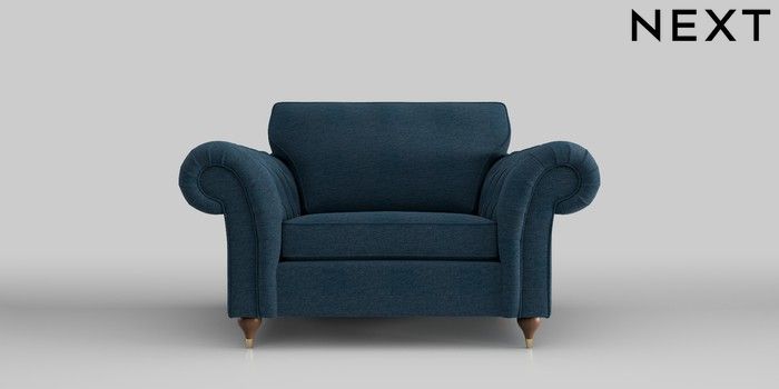 6.12.1 Buy Gosford Highback II Deep Sit Snuggle Ripple Chenille Dark Blue Modern Turned Metal Cap - Mid from the Next UK online shop Click here to use our accessible website