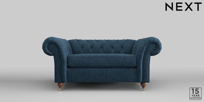 6.12.1 Buy Gosford II Deep Sit 2 Seater Small Sofa Cotswold Chenille Dark Blue Modern Turned Metal Cap - Mid from the Next UK online shop Click here to use our accessible website