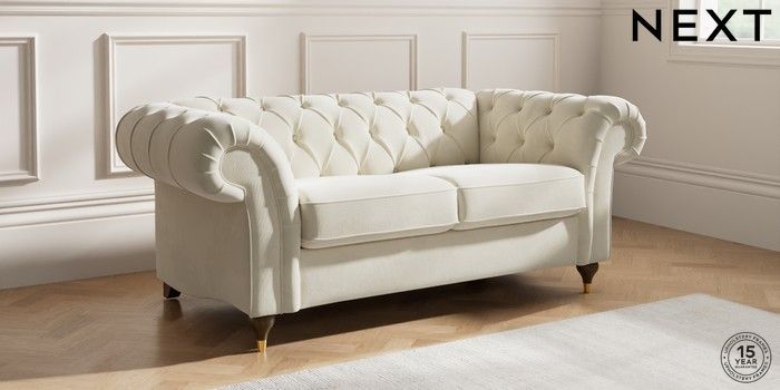 7.0.3 Buy Gosford II Deep Sit 2 Seater Sofa Luxe Chenille Oyster Modern Turned Metal Cap - Mid from the Next UK online shop Click here to use our accessible website