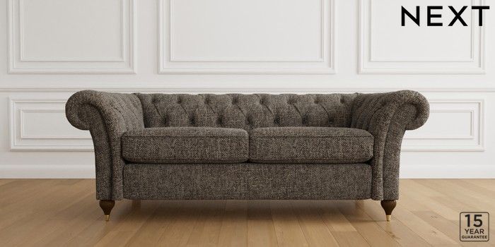 6.11.8 Buy Gosford II Deep Sit 3 Seater Small Sofa Chunky Chenille Mink Brown Modern Turned Metal Cap - Mid from the Next UK online shop Click here to use our accessible website