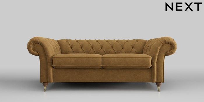 6.12.1 Buy Gosford II Deep Sit 3 Seater Small Sofa Luxe Chenille Honey Yellow Castor - Mid from the Next UK online shop Click here to use our accessible website