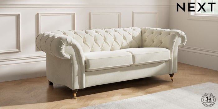 7.0.3 Buy Gosford II Deep Sit 3 Seater Small Sofa Luxe Chenille Oyster Castor - Mid from the Next UK online shop Click here to use our accessible website